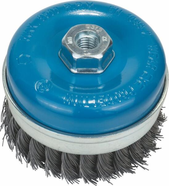 A PRO Metal heavy fazékkefe tartós kiegészítője minden olyan fémműhelynek, ahol hegesztési varratot, erős rozsdát, régi festéket, lakkot és alvázvédőt kell eltávolítani acélfelületekről. A fazékkefe kiváló minőségű fonott huzalból készül, hogy nagy igénybevételt jelentő feladatokhoz használhasd. A csészekefe különböző vastagságú huzalokból kapható. A vastagabb huzalú csészekeféket használd a gyors, durva csiszoláshoz, a vékonyabb huzalúakat pedig a simább felület eléréséhez. Az alábbi anyag(ok)hoz ajánlott: acél