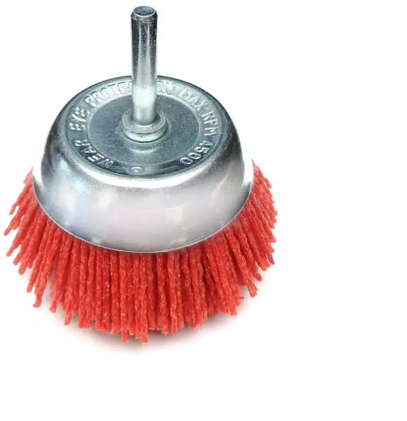 A csiszolófejjel és tüskével ellátott csiszolókefe fúrógépre vagy csavarhúzóra szerelhető. A kefe alumíniummal bevont nejlon sörtékből készül. Acél, színesfémek kíméletes tisztításához, régi festék eltávolításához, öregedő fa eltávolításához.
