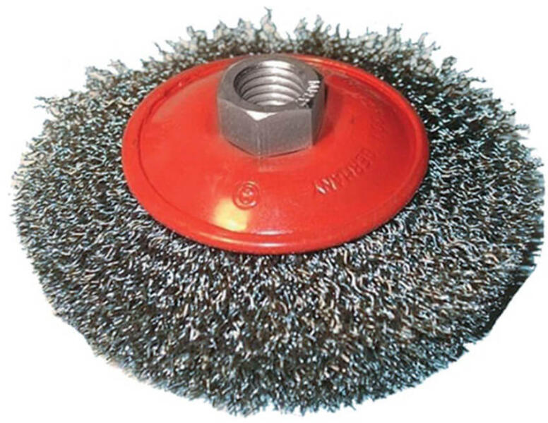 EXTOL drótcsiszoló körkefe, kúpos; hullámos szálú ; sarokcsiszolóhoz, M14×2 100mm, ford. : 12500 (17006)