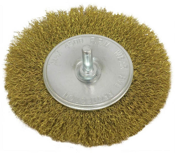 EXTOL drótcsiszoló körkefe fúróba fogható, rezezett ; 100mm, O 6mm-es csap, max. 4500 ford/perc (17055)