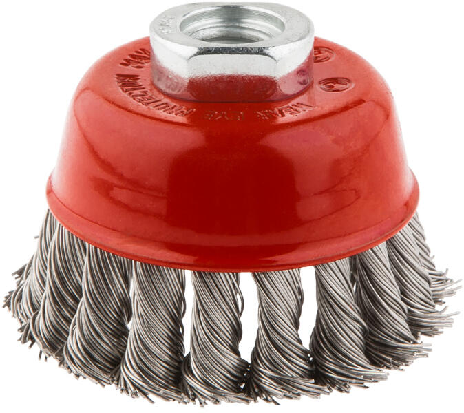 Fazékkefe, M14 felfogatás sarokcsiszolóra, INOX, 0,5 mm fonott drót