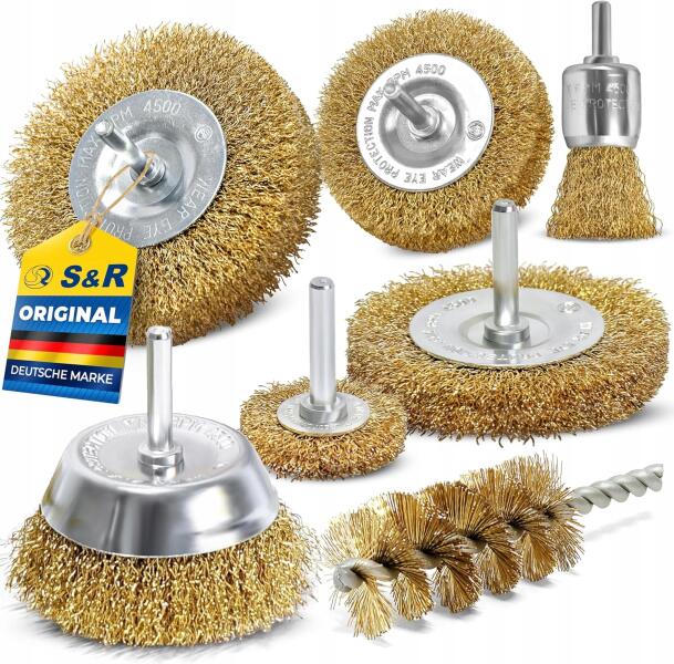 S&R Sárgaréz bevonatú drótkefe készlet, 7 darabos S&r hullámos drótkefe (135002007)